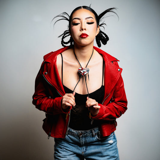 Star Blanket Bolo Tie with Spikes // Marble + Matte Black + Silver