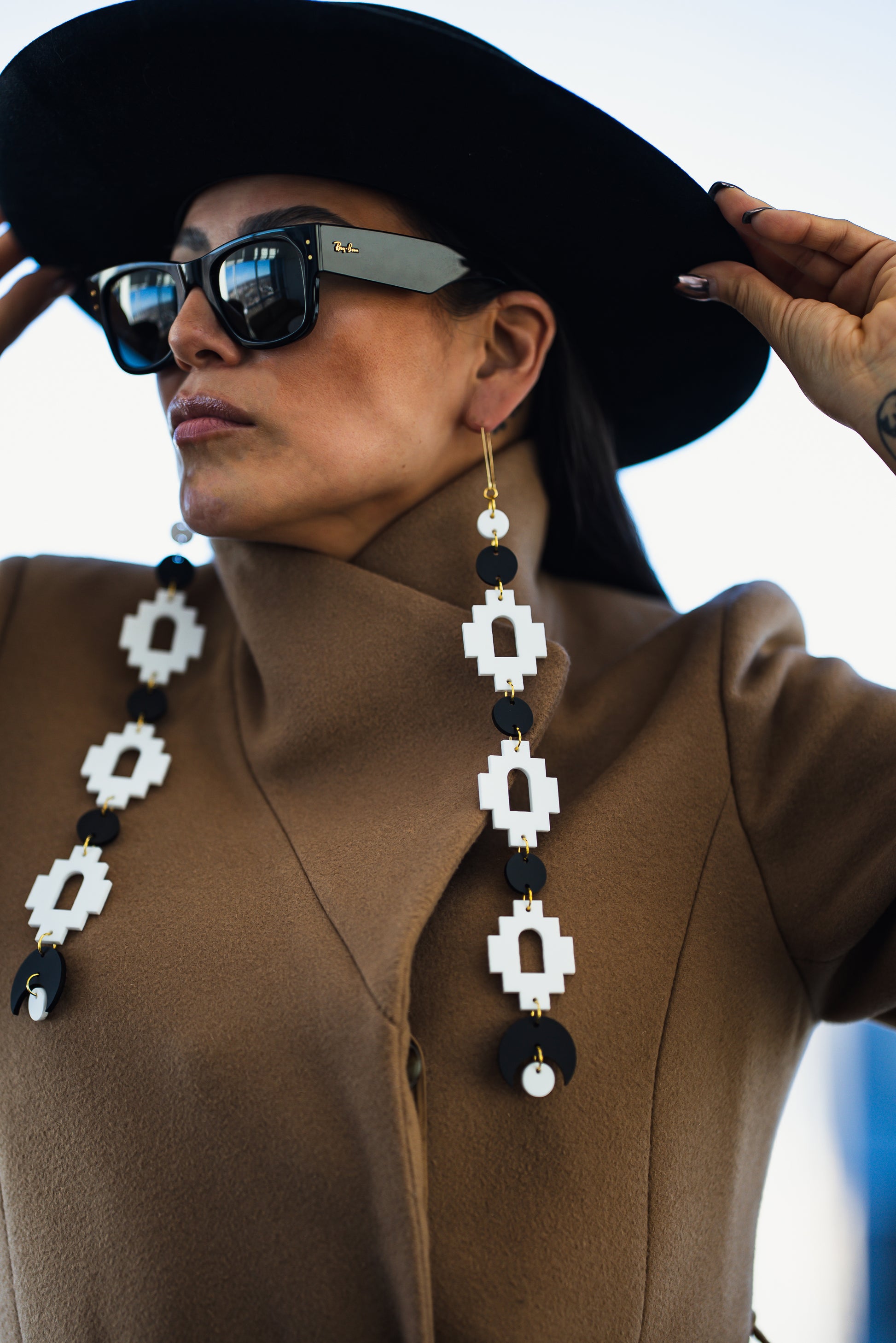 • Hardware: Gold-tone elongated hypoallergenic hooks